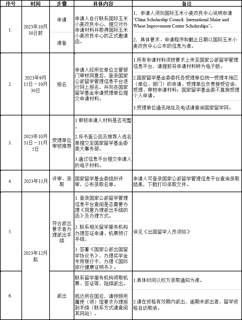 2023年国家留学基金管理委员会与墨西哥国际玉米小麦改良中心合作奖学金(第二批)