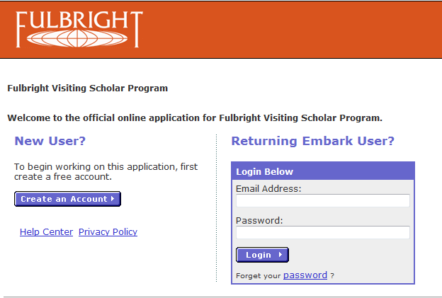 ? You must first create an account in order to log into the Embark Application system. We strongly suggest that you record this information because you will need it to access your account and retrieve your application, as you are unable to finish the application in one setting. 请一定记住您的登陆帐户和密码,因为您需要多次登录此系统以便更新您的申请材料。