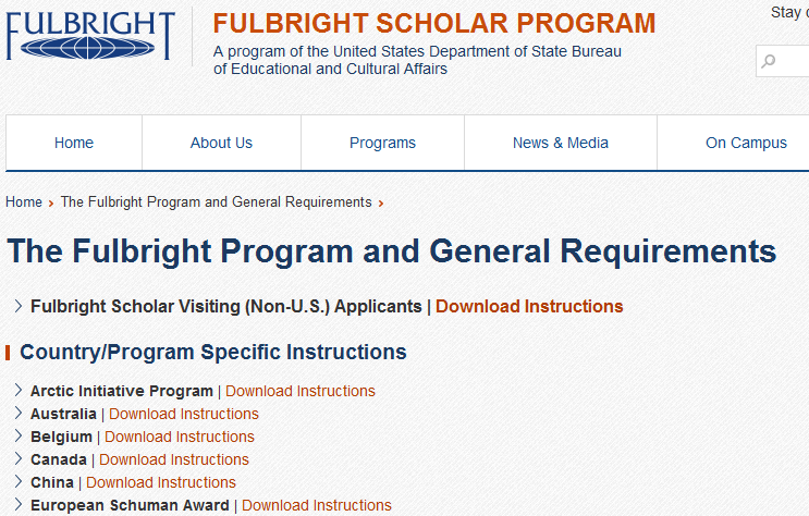 To access the Fulbright Program and General Requirements, click the link and it will bring you to the next page (see below), and then click china | download instructions.