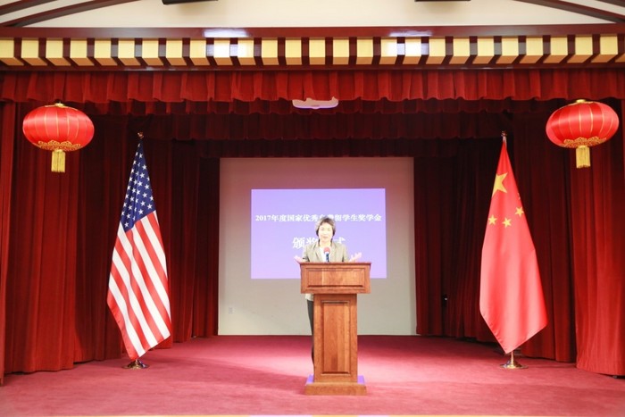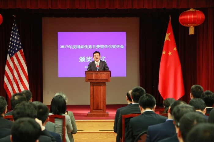 驻旧金山总领事罗林泉为2017年度国家优秀自费留学生奖学金获奖学生颁奖
