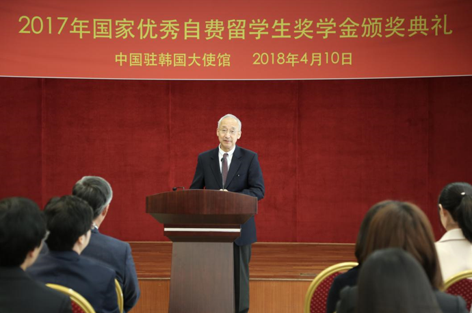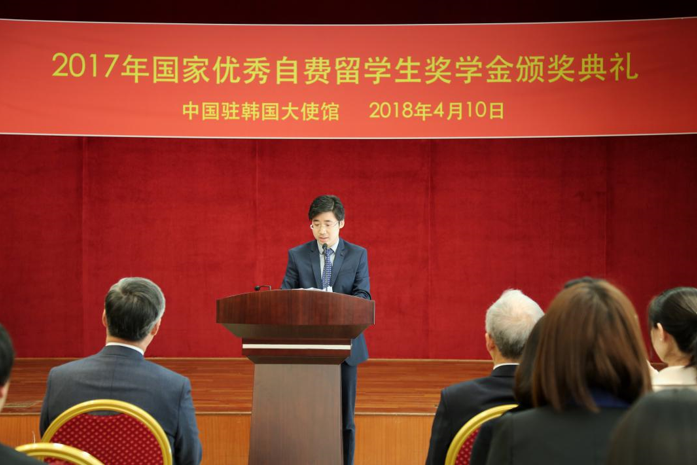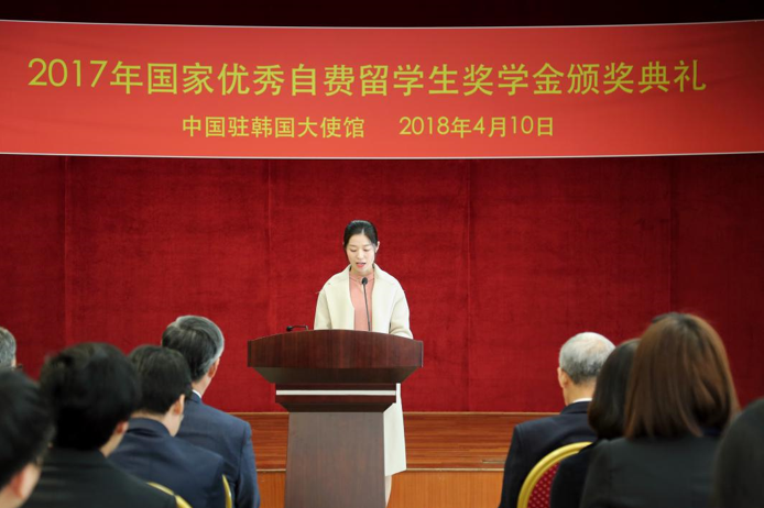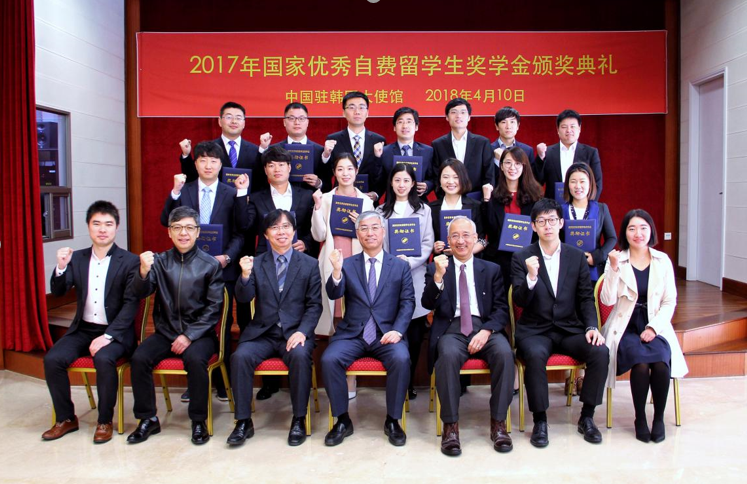 “心系祖国,学以致用,贡献力量”2017年度国家优秀自费留学生奖学金颁奖典礼在驻韩使馆举行