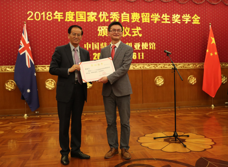 驻澳使馆举办“国家优秀自费留学生奖学金”颁奖仪式