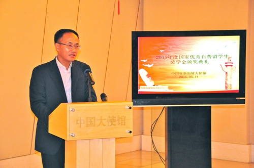 驻新加坡使馆举行2015年度国家优秀自费留学生奖学金颁奖活动