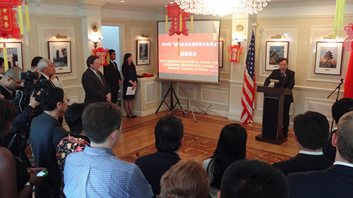 中国驻美国大使馆举办2016年度国家优秀自费留学生奖学金颁奖仪式